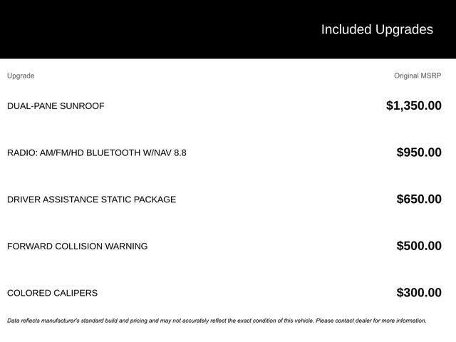 8.8 Widescreen Color Display, Auto-Dimming Exterior Mirrors, Automatic temperature control, Blind Spot & Cross Path Detection, Driver Assistance Static Package, Front dual zone A/C, GPS Navigation, Power driver seat, Quick Order Package 22G, Rain sensing wipers, Rear window defroster, Remote keyless entry, Speed-Sensitive Wipers, Variably intermittent wipers, Wheels: 18 x 8.0 Dark Turbine Aluminum.